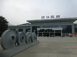 As of 2016, the local authorities are literally moving mountains in order to construct a grand boulevard connecting the new Hekou North Station with the city. Until this project is completed, getting to the station involves driving on a winding back road across residential neighborhoods. Bus service from the station to downtown Hekou is available.