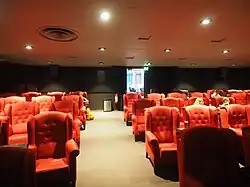 • 🌍 Maxim, Kluuvikatu 1. The oldest film theatre in Finland. It is owned by Finnkino, carrying the more artistic side of Finnkino's programme. Only two auditoriums, and no 3D or IMAX technology, but this is still a unique experience. All the seats in both auditoriums are large and plush armchairs with plenty of leg room. The bar at the theatre is well stocked with tapas-style food and both alcoholic and non-alcoholic drinks, and you can take all of it with you to the film. OSM directions target=_blank