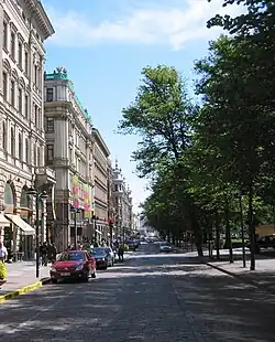This is undoubtedly the liveliest part of Helsinki and much of what a visitor would like to see and experience is located in central Helsinki or — while in other districts — just a few hundred metres away. Here you can find the Central Railway Station with its surroundings; the art museums of Ateneum and Kiasma with the statue of Marshal Mannerheim in the front of the latter, modern architecture like the Oodi library, Sanomatalo and the Citycenter mall also known as the "Sausage house". One block south is Aleksanterinkatu, which together with its side streets make up Helsinki's main shopping area with small shops and department stores. And still one block south is Esplanadinpuisto, the Esplanade park that is very popular in the summer. The area also offers plenty of alternatives for eating and drinking, and some cultural venues.