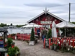 - 🌍 Café Regatta, Merikannontie 10, ☏ +358 40 0760049. 10:00-23:00. A pleasant little café located at the seashore in western Töölö. Serves good coffee and pastries. In summertime, the café tends to be absolutely packed with locals and tourists. You're better off sitting at the terrace rather than inside the café. Coffee costs €2, but if you have an additional cup, the café actually gives you 5 cents back instead of charging you.