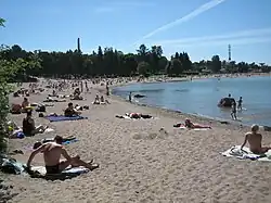 - 🌍 Hietaniemi Beach, Hietaniemenkatu (Buses 55A and 18 or tram 2 from Kamppi/Rautatientori, or just walk (15-20 min from the centre).). It's safe to say that most people don't come to Helsinki for the beaches, but on a hot summer day in July Hietsu (as it is known to locals) is a good place to be. Beach volleyball, swimming and various events are popular. It's wide city center sand beach and moreover, surrounded with large park area, where people sunbathe and picnic in the summer time.
