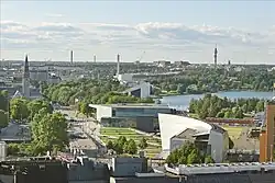 - 🌍 Töölönlahti (northwest from the central railway station). This is a bay surrounded by a nice park that is dotted with attractions such as the Finlandia Concert Hall and the National Opera. Töölönlahti is partly in a natural state which is quite rare in major cities. Walking and jogging around the bay is a popular outdoor activity.