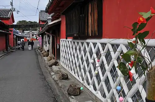 - 🌍 Kamebishiya (かめびし屋). 10:00-17:00. Both an attraction and a restaurant, the Kamebishiya is the most striking of the Hiketa Historic District's buildings with its bright vermillion colored walls. As a business, they've been making and selling soy sauce since 1753. The restaurant serves soy sauce udon, using their homemade soy sauce and moromi udon, which is only available here. Even if you don't plan to eat here, it's worth entering to see the historic building, and they have a shop where you can buy their soy sauce, soy sauce chocolate snacks, and spicy soy sauce snacks.