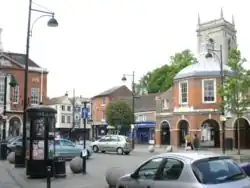 High Wycombe is a large and historic town between hills in the county of Buckinghamshire in England. Furniture making played an extensive role in the town's industrial heritage. The market in High Street dates back to the Middle Ages.