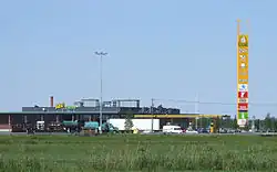 Through the fields and swamplands, and with some fairly long straight sections, the journey continues to the town of 🌍 Pulkkila (516 km), the administrative centre of the municipality of Siikalatva, covering many towns in the region. The sand walls you will see on the east side of the road soon after Pulkkila are holding back the water of 🌍 Uljua reservior (Uljuan tekoallas) and Uljua hydroelectric plant. Short after that, the highway crosses river Siikajoki. The following town 🌍 Rantsila (548 km) was probably best known for the Kylmänen meat processing plant right next to the road, which burned down in 2017. The road passes through the town of 🌍 Temmes (578 km) and eventually comes the big roundabout where Highway 4 meets up with Highway 8 coming along the west coast from Turku via Pori, Vaasa and Kokkola.