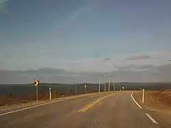 The further you travel, the conifers are more and more replaced by mountain birch and the landscape starts looking like tundra. From 🌍 Kaamanen (1187 km), highway 92 leads west to Karigasniemi, this was the route of highway 4 from the end of WWII until 1993, when it was changed to its current routing. To the east, highway 92 leads via 🌍 Sevettijärvi and Näätämö to Norwegian Neiden, all three Skolt Sámi villages. The final 100 km of the highway zig-zags through an uninhabited tundra landscape with low vegetation, but instead hills and mountains. There are protected areas on both sides of the road; 🌍 Kevo Strict Nature Reserve and Paistunturi Wilderness Area to the west and 🌍 Kaldoaivi Wilderness Area to the east. Eventually, you will arrive in the town of 🌍 Utsjoki (1282 km), and the very last part of the highway goes to the Sami Bridge crossing the Teno river into Norway.