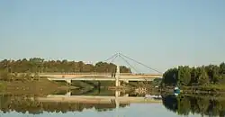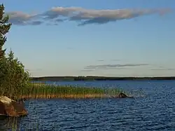 You'll enter the province of Northern Ostrobothnia, the part of it that is here on Wikivoyage described as the Southern Oulu region. The first town is 🌍 Pyhäjärvi (450 km), and right next to the road is 🌍 Vaskikello — a truck stop with an outdoor museum with many church bells on display. After Pyhäjärvi, the road follows the river Pyhäjoki, one of the many rivers in this part of the country, though they tend to be rather narrow this far inland. Then follows 🌍 Kärsämäki (484 km), where you can see Paanukirkko, a church built in the early 2000s using traditional building techniques from the 18th century and using black wood shingles. As a funny piece of trivia, Kärsämäki translates to "snout hill". In the village of Leskelä you will pass next to the 🌍 "Centre of Finland" (Suomen keskipiste; 506 km). The geographical centre of Finland is reportedly not exactly there, but in a nearby swamp; going to the real centre would not be as convenient as just parking off the road. Here, the road is crossed by regional road 800, the longest regional road in Finland. Following that road northeast would bring you to the town of Puolanka, which has a marker for the centre of the Finnish mainland. That centre is by the way not in Puolanka either, but out in the woods, some 10 km away...