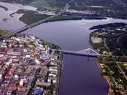 The distances between towns and villages get longer as you travel further north. The only town (and municipal centre) on the section to Rovaniemi is 🌍 Tervola (756 km), and even that is on the other bank of the river. Eventually the road reaches the last major city along the highway — 🌍 Rovaniemi (830 km). The capital and gateway to Finnish Lapland, it is a major tourist destination, one reason being that one can meet Santa Claus at the Arctic Circle just north of the city.