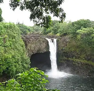 - π Rainbow Falls. If you don't have time to make it up to Akaka Falls, or you don't like hiking, Rainbow Falls is worth a visit. Try to visit early in the day. You have a better chance to see the rainbow created by the mist. Drive up Waianuenue Avenue from downtown, following the signs. If you pass the hospital, you have gone too far. Very wheelchair accessible, but the Boiling Pots will require some hiking.