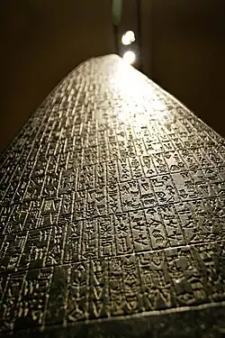 Whilst human society has had laws since the beginning of civilisation if not before, the Code of Hammurabi is one of the earliest (around 1750 BCE) written legal codes. It is from originally Babylon in Ancient Mesopotamia but the stele was moved in ancient times and found by archeologists at Susa in Iran; the original is now in the Louvre and there are copies in several other museums. Over the millennia since the composition of that document, "justice" and the laws, rights and responsibilities that back it up have changed greatly. The "rule of law" is for many is a hard won battle, that continues to the present day.