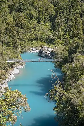 - π Hokitika Gorge (33 km east of Hokitika). Some thirty minutes away from the town by car. Cross a swingbridge over stunning blue waters, on the 15 minute walk through forest to a viewing platform.