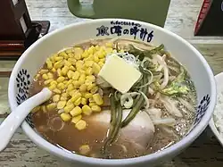 - miso ramen (味噌ラーメン) noodle soup, often with butter and/or corn (バターコーンラーメン batākōn ramen). Hokkaido's most famous ramen chain Santouka, now franchised around the world, hails from Asahikawa.