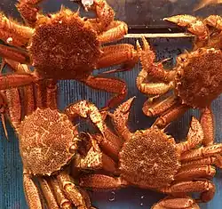 Much of Hokkaido's population lives by the sea, and consequently seafood figures heavily in Hokkaido fare. Check out the hairy crabs (毛蟹 kegani), king crabs (タラバ taraba) and the delicious sushi. Akkeshi's oysters, Saroma's scallops, and the northwest coast's sea urchin (うに uni) are considered to be among Japan's very best seafood.