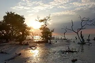 - Isla de la Pasion (boat from Holbox, or take islands tour from Holbox). Very small island off the southwestern point of Holbox. Sandy beaches and very shallow water. Thousands of frigate birds, herons, pelicans, cormorants and other marine birds nest in the trees. Flamingos at certain times of year. At low tide you can walk/wade between Isla de la Pasion and Isla Holbox.