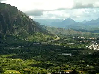If you're looking for a vista that doesn't require a long hike, look no further than the hills above Makiki. The Punchbowl crater, home to the National Memorial Cemetery of the Pacific, offers a panoramic view closer to Downtown. Pu'u Ualaka'a State Wayside, also above Makiki along Tantalus/Round Top Drive, is the site of a lookout with sweeping view of southern O'ahu from Diamond Head to Pearl Harbor, including Honolulu and Manoa Valley. Picnic shelters are available, and trailheads for a network of hiking trails can be found at various points along the drive. Another popular overlook is the Nu'uanu Pali Lookout, 6 miles north of Downtown on State Route 61 (Pali Highway). The scenic vista, set between two incredibly high cliffs, provides a panoramic view of Windward O'ahu. The overlook is often buffeted by high winds, but the view is more than worth it.