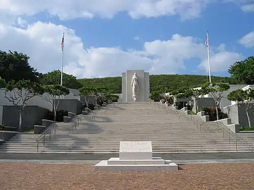 - π The National Memorial Cemetery of the Pacific, 2177 Puowaina Dr, β +1 808 532-3720. Situated in the middle of Punchbowl, an extinct crater, this is the final resting place for over 38,000 personnel from WWII, the Korean War and Vietnam. A shrine also commemorates the missing-in-action. It's also the resting place of Stan Dunham, Barack Obama's grandfather. The rim of the crater offers panoramic views of Honolulu. The memorial contains a series of time-line and map-based wall paintings that tell the story of Japanese advances at the beginning of WWII followed by retreat in the face of Allied advances and, ultimately, victory in the Pacific. The cemetery is open year-round (and is closed only on federal holidays other than Memorial Day).