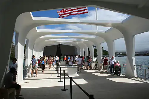 - 🌍 USS Arizona Memorial, ☏ +1 808 422-0561, fax: +1 808 483-8608. Daily 7:30AM-3PM; closed Thanksgiving, 25 Dec, 1 Jan. This memorial, built over the hull of the sunken battleship USS Arizona, commemorates the Japanese attack on Pearl Harbor which brought the U.S. into World War II. It also serves as the final resting place for many of the 1,177 who died here. Visitors view an interpretive film, then board ferry boats which run from the visitor center to the memorial. Tickets must be reserved ahead of time online and are limited. Previous day reservations usually sell out in less than one minute. Same day visit possible depending on no show reservations. $1 reservation fee.