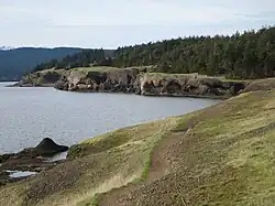 - 🌍 Helliwell Provincial Park, end of St. John's Point Rd. Park located on a rocky headland best known for its oceanside hike on top of the Helliwell bluffs. The 5 km loop has plenty of views of Hornby Island and across the Strait of Georgia to the Coast Mountains. Other highlights include some old-growth Douglas fir forest and, in spring, wildflowers near the cliffs. Offshore is Flora Islet, a diving spot that is one of two places in the world to see the Six-gill shark.