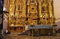 - Parroquia de San Luis Obispo — The church and monastery were built between 1567 and 1585. It is a grey stone structure with white stucco bell towers. The exterior is simple, but the interior has more elaborate architectural elements with churrigueresque altars of gold, a number of alabaster statues in the main portal, and colonial era paintings throughout the church and monastery. The oldest paintings are in the Third Order chapel.
