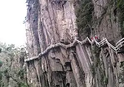 Huangshan (黄山; Huángshān; lit.: Yellow Mountain) is in Anhui Province in China, toward the southern end near the border with Zhejiang. It is on the UNESCO World Heritage List. There is also a Huangshan city to the south and a Huangshan district to the north.