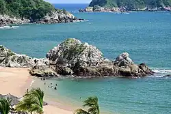 Bahías de Huatulco (pronounced Wha-TOOL-Co), is a destination resort area on Mexico's Pacific Coast in its most southern state of Oaxaca. More commonly known to outsiders as just Huatulco, the area is locally referred to as "Bahias" to distinguish it from the original, further-inland town of Santa María Huatulco. Huatulco's tourism industry is centered around its nine bays, four of which have been designated as ecological preserves where no development is permitted. The bays of Huatulco and adjacent dry tropical forest are a designated UNESCO World Biosphere Reserve. Because of the sheltered nature of Huatulco's bays, its white sand beaches are a great place for wading or swimming in calm waters, and it's also the main place along the Oaxaca coast for snorkeling, though most of the coral died in the marine heat wave of 2023.