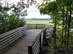 A ferry operates during most of the spring, all of summer, and most of autumn taking cars, people and bikes from Oka to Hudson across the Lake of Two Mountains. It leaves from Main Road, just east of Bellevue Street. In the winter, the lake freezes over.