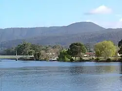Built in a broad valley, the central feature is the Huon River. On each side are mountains, including Mount Misery (pictured). Native forest is visible in every direction from the town itself. The Mount Misery walk is the easiest place to access rainforest and oldgrowth forest. River access is easy at the esplanade. Playground, toilets, picnic tables.