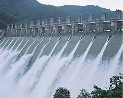 Peace Dam, also known as Hwacheon Dam, is a large dam, completed in 2005. Bimokpark and Mulmunhall are to the left of the power plant entrance. Mulmunhall promotes the importance of water resources and has been operating a restaurant and other facilities. Biompark promotes the natural environment.