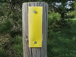 Yellow blazes mark the path of the Ice Age Trail