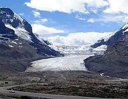 - 🌍 Columbia Icefield. One highlight of the Icefields Parkway: ride on a Snocoach right up onto the glacier, get out and walk around on the ice. During the summer, trained guides offer 3- or 5-hour walks on the Athabasca Glacier, but this is only possible when there is no snow cover on the ice. At the very beginning of the tourist season the glacier is sometimes a smooth white sheet of snow, giving no hint as to the maze of deadly crevasses under its surface. It's also possible to park car near the toe of the glacier with a short but steep walk up to the toe of the glacier (restricted path way due to crevasses).