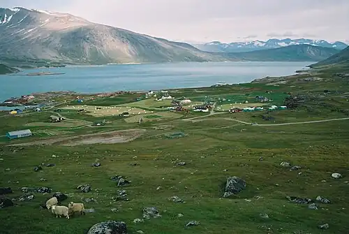 Narsaq, a town further down Tunulliarfik Fjord towards Qaqortoq.