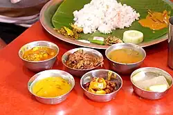 Manipuri lunch means white rice, vegetable curry, cucumbers, groundnut gravy and onions.