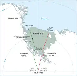 Scott was a British Royal Navy officer who led two expeditions to the Antarctic regions in 1901–1904 and 1910–1913. On the first expedition, he set a new southern record by marching to latitude 82°S and discovered the Antarctic Plateau, on which the South Pole is located.