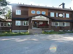 Wilderness Hotel Juutua when it was still known as Hotel Inarin Kultahovi. - 🌍 Wilderness Hotel Juutua, Saarikoskentie 2 (in the village.). Originally named Inarin Kultahovi, dating back to 1937. The building was destroyed in the Lapland War but was soon rebuilt. Today it belongs to the Wilderness Hotels chain. The hotel has a riverfront sauna. €106.