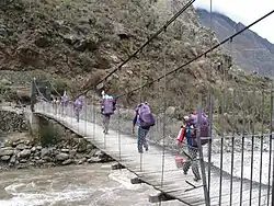 The Inca Trail is one of the relatively few treks globally that features porters: pack animals are not allowed on the trail because their hooves damage it. Porters are local Quechua farmers, typically poor and uneducated, and this is a major source of income for them. Most will not speak English or even much Spanish; knowing a few phrases of Quechua is a nice touch; see Quechua phrasebook.