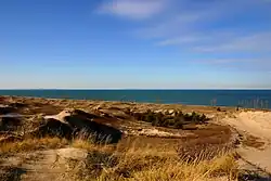 • 🌍 Mt Baldy. The name of the park's highest dune, and given the height of the dunes around the beach, this beach is the most strenuous to reach. The views from the top of the "mountain" are quite nice, and reward the heavy breathing you'll do on the trail to the top. Don't let the fear-mongering signage dissuade you, though, the trek really is not too hard, as it is a gentle incline heading up. Walking in sand even on a slight incline, though, is a good deal harder than on solid ground. The drop from Mt Baldy to the beach is extreme, and goofing around on the steep slope is a bad ideasand is soft, but you could pick up enough speed rolling down to seriously injure yourself. There is an alternate path further back along the Mount Baldy trail that will take you to the beach without the sharp incline. Mount Baldy is suffering from increasing erosion, in part due to off-trail hiking. Please only hike the main trail on Mount Baldy. OSM directions target=_blank