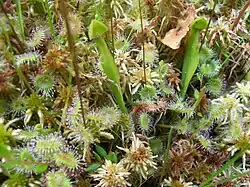 Round-leaved sundews and baby purple pitcher plants in Pinhook Bog