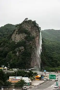 🌍Maebawi Artificial Waterfall(매바위 인공폭포),1719 Yongdae-ri, Buk-myeon.An artificial waterfall in Yongdae-ri that falls over a tall mountain rock, giving a majestic impression. In summer, people come here to cool down; in winter it freezes over, and ice climbing enthusiasts come here to train themselves.Free.(updated Apr 2025)