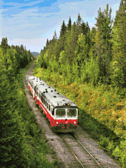Inlandsbanan (lit. "the inland line", as opposed to the coastal mainline) is a rail line through central and northern Sweden. While parts of the railway are open for regular traffic year round, there are daily tourist trains during summer.
