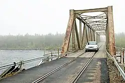 Bridge over Pite älv (after Moskosel). Mind oncoming traffic! - 🌍 Moskosel — with the navvy museum