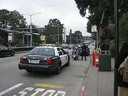 In many cities, curbs are painted to reflect the ability to park at a particular location. The colors used and the meaning of the colors used varies from city to city. In general, red (and sometimes yellow) means "no parking" and blue designates handicapped parking only (with an appropriate license plate or placard). In California, yellow curbs designate loading only (goods/cargo), white designates passenger pickup or dropoff, and green indicates there is a time limit for parking (look at signs for time limit). Elsewhere, the meaning of curb colors varies. Always follow parking signs and, if you are uncertain whether parking is allowed at a particular spot, it's best to park elsewhere than receive a parking ticket or even have your vehicle towed and impounded (which will result in a large fee to retrieve). A parked vehicle should never block a crosswalk, fire hydrant, or the entrance to a driveway/alley.