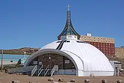 - 🌍 St. Jude's Anglican Cathedral (Igloo Cathedral), ☏ +1 867 979-5595, vestryiqaluit@gmail.com. One of Iqaluit's most recognizable landmarks is a white-domed church designed to resemble an igloo. The cathedral is the seat of the Diocese of the Arctic, which serves the largest area of any Anglican diocese in the world. The cathedral is also the parish church for the parish of Iqaluit. The building was opened in 2012.