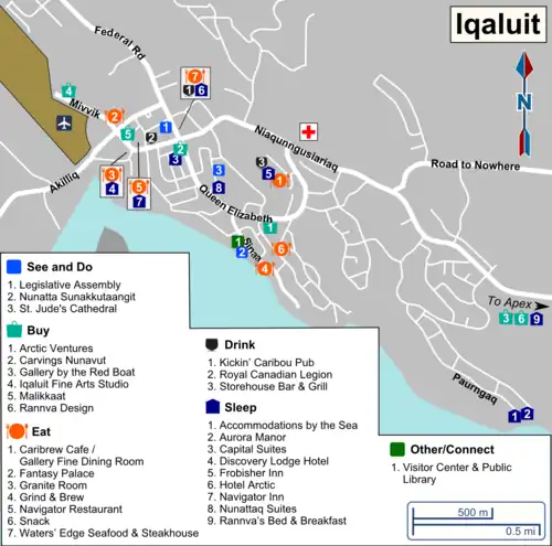 - 🌍 Capital Suites, 807 Aiviq Street, ☏ +1 867 975-4000, iqres@capitalsuites.ca. Hotel suites. Fitness centre. Free parking and WiFi. Double $285–310.