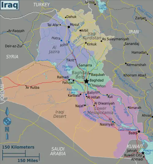 | Northwestern Iraq The land north and northwest of Baghdad, between and around the upper Tigris and Euphrates rivers. An Assyrian/Chaldean minority exists primarily in the north. |
