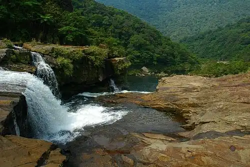 - At the end of the 8-km cruise you can disembark at Gunkan-iwa Rock and trek for half an hour through the jungle down a well-trod path to a viewing pavilion (展望台 tenbōdai) with views of the Mariyudu Waterfalls (マリユドゥの滝 Mariyudu-no-taki). The paths can be quite muddy so boots can be useful (they will lend you some if you come back by canoe).