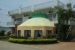 - 🌍 Pine-Kan (民宿パイン館), Uehara 10-171, ☏ +81 980-85-6408. A B&B shaped like a pineapple. Free pickup, free air-con, and in the summer, free all-you-can-eat pineapple. The owner's specialty is the smaller, sweeter peach-pineapple. Japanese-style room without bathroom or meals ¥4,700, solo traveler surcharge ¥1,000.