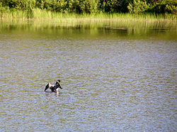 Other common mammals are red foxes (filling the scavenger niche, especially around camp sites), beavers (in inland lakes and ponds), red squirrels (everywhere), snowshoe hares, and otters. Loons, eagles, and ospreys nest on the island, and a large variety of songbirds, woodpeckers, and aquatic birds (especially gulls and ducks) will be seen. Painted turtles, garter snakes, and a few varieties of amphibians are common. Northern pike are plentiful in most of the inland lakes, along with varieties of trout, perch, walleye, and other sport fish. Mosquitoes, no-see-ums, and a few varieties of biting flies are unfortunately abundant, though the extent of these nuisances varies year to year, by season, and from one locale to another. Insect repellent is essential, and a face net will provide welcome relief when the bugs seem intent on driving you crazy even when your bug dope prevents them from landing. There are bees on the island as well.