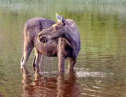 Secondarily, there's the wildlife. Sightings of small fauna such as squirrels and songbirds are inevitable. Fox, moose, and loon encounters can be expected if you look for them (and perhaps even if you don't). Signs of the island's wolf presence (e.g. footprints and scat) are common, and even nighttime howls or a chance glimpse through the trees are just common enough to keep hikers' eyes and ears open for them. Moose commonly use the island's trails as well, and leave plenty of droppings. When populations are high, moose sightings are fairly common. Their numbers have fallen, however.