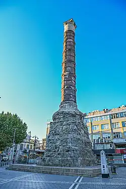 • 🌍 Column of Constantine is at the corner of Yeniçeriler Cd and Vezirhan Cd ( Çemberlitaş 15 m). Erected in honour of Constantine in 328 AD, it's nowadays 35 m tall, with rough-hewn porphyry blocks. Originally it was topped by a statue of Constantine flouncing like Apollo at a gay cabaret; this blew down in the 12th century and was replaced with a cross that the Ottomans briskly removed. They reinforced the column with iron bands, Çemberlitaş, which became the name of the neighbourhood.