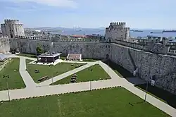 • 🌍 Yedikule Fortress, Yedikule Meydanı Sk 9 ( Yedikule 300 m), +90 212 453 1453. Tu-Su 08:30-17:00. The Golden Gate was the ceremonial entrance through the Theodosian city walls. After the Ottomans captured the city in 1453, Mehmed II needed a stronghold for his treasures and documents. The gate was therefore bricked up and the walls reinforced into a fortress, with valuables stored in its seven towers, hence yedi kule. In the following century the treasury moved to Topkapi Palace and the fort became a prison for high-level detainees - Osman II was strangled here in 1622. It remained in use until 1837, whereupon the Golden Gate was re-opened. Adult 250 TL. OSM directions target=_blank